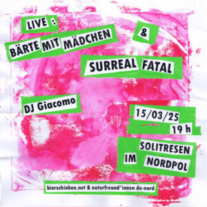 • 15.03.2025: NaturFreund:innen Tresen und Konzert mit Surreal Fatal und Bärte mit Mädchen by bierschinken.net